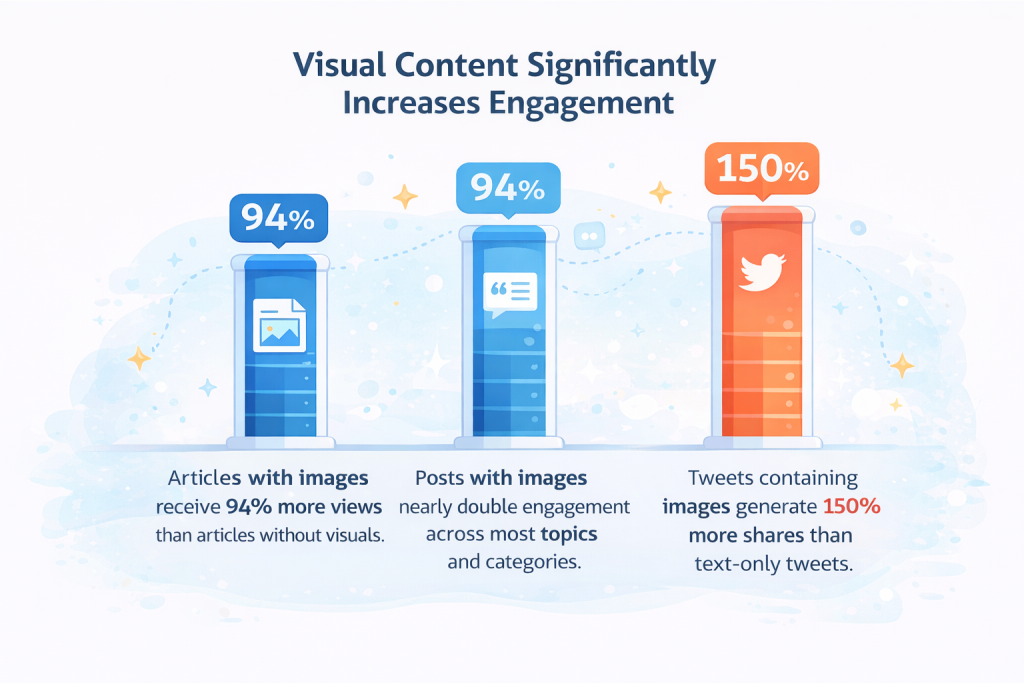 - Content with relevant images gets 94% more views than content without.