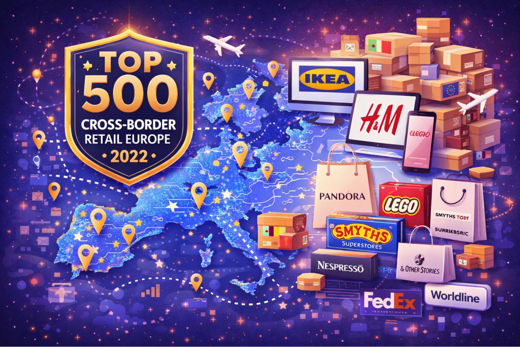 Cross-Border Commerce Europe, the platform that stimulates online cross-border EU retailers, releases a major research paper covering and ranking the 500 strongest European players with a focus on cross-border performance. The total online EU cross-border market represents a turnover of €146 billion in 2022 (excluding travel), a record increase of 35% YTD. In this third edition of the “TOP 500 Cross-Border Retail Europe”, Ikea maintains the leading position. The H&M group, with its 3 main brands in the TOP 10, paves the way to a robust cross-border strategy. A study produced by CBCommerce with the support of FedEx Express and Worldline.